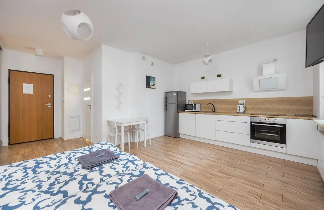 Obiekt noclegowy posiada pełnowymiarową kuchnię, gdzie dla wygodnego pobytu przewidziano piekarnik i zmywarkę do naczyń. Apartament Warsaw - Aparts Ursynów jest położony maksymalnie 600 m od stacji metra Stokłosy i w bliskiej odległości od przystanku autobusowego Nugat 01.